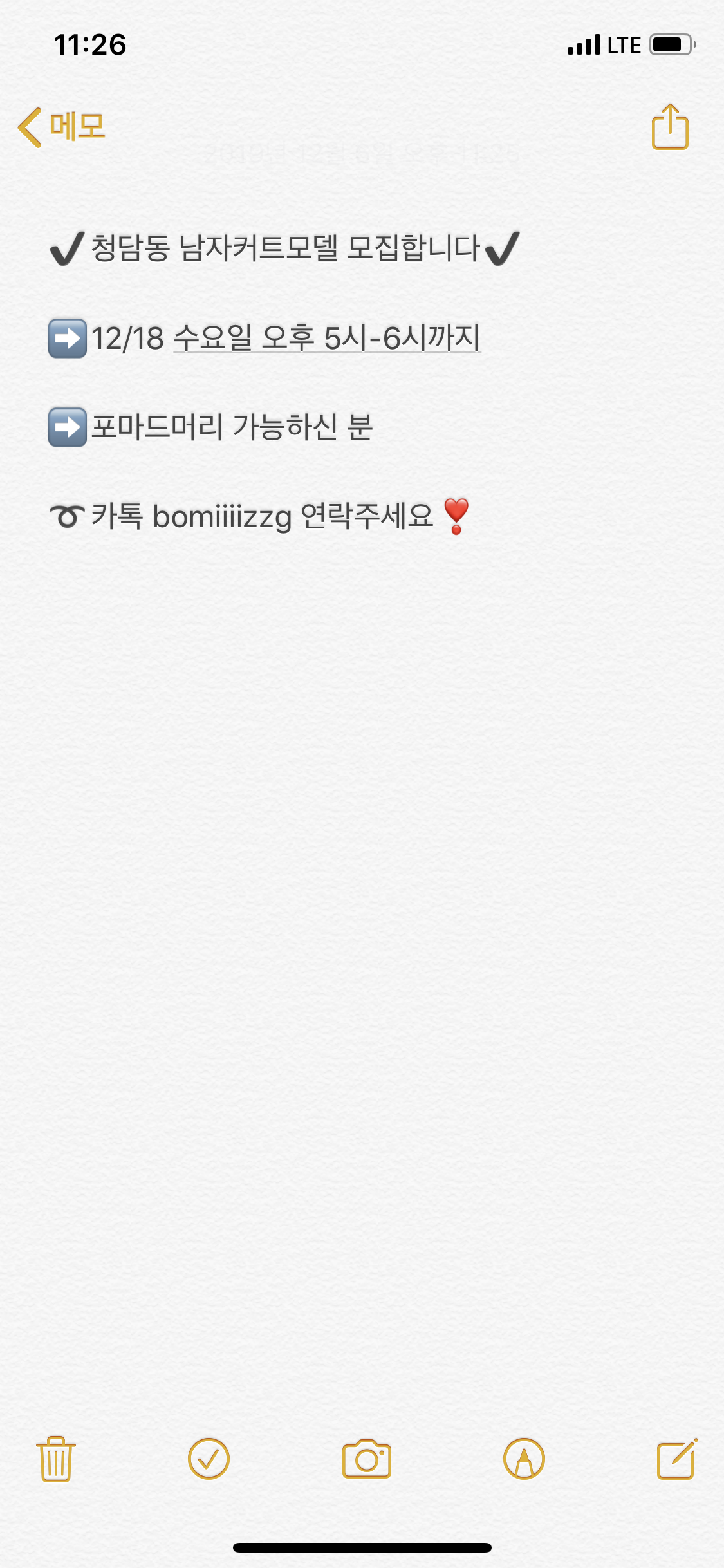청담에서 포마드 헤어커트모델 모집합니다