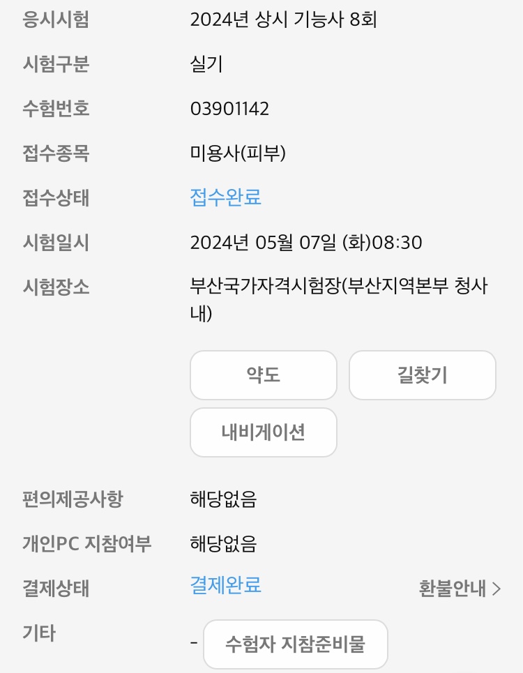 화장은 시험장 도착해서 하면 됩니다