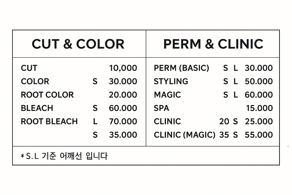 컷 ✂️,펌 🌸,컬러 🎨,클리닉 & 스파 💆